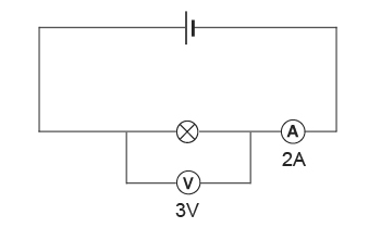In the circuit below the voltmeter reading across the lamp is 3V and the ammeter reads 2A of electrical current. What is the resistance across the lamp?