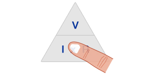 A simple way of using the Ohm’s Law relationship is to use the triangle method. This involves taking the equation in the form where there is only multiplication and no division. In the case of Ohm’s Law in the form V = I x R and arranging it in a triangle so that V is at the top and I and R at the bottom.