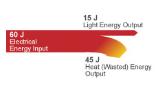An ordinary light bulb works on the principle of a thin wire (filament) being heated by the resistance to the electrical current. At a temperature of about 1100°C it glows with a bright white light. As the electrical energy is required in heating the wire hence this is why most of the energy is given off as heat. Lamps which give of light when hot are called incandescent.